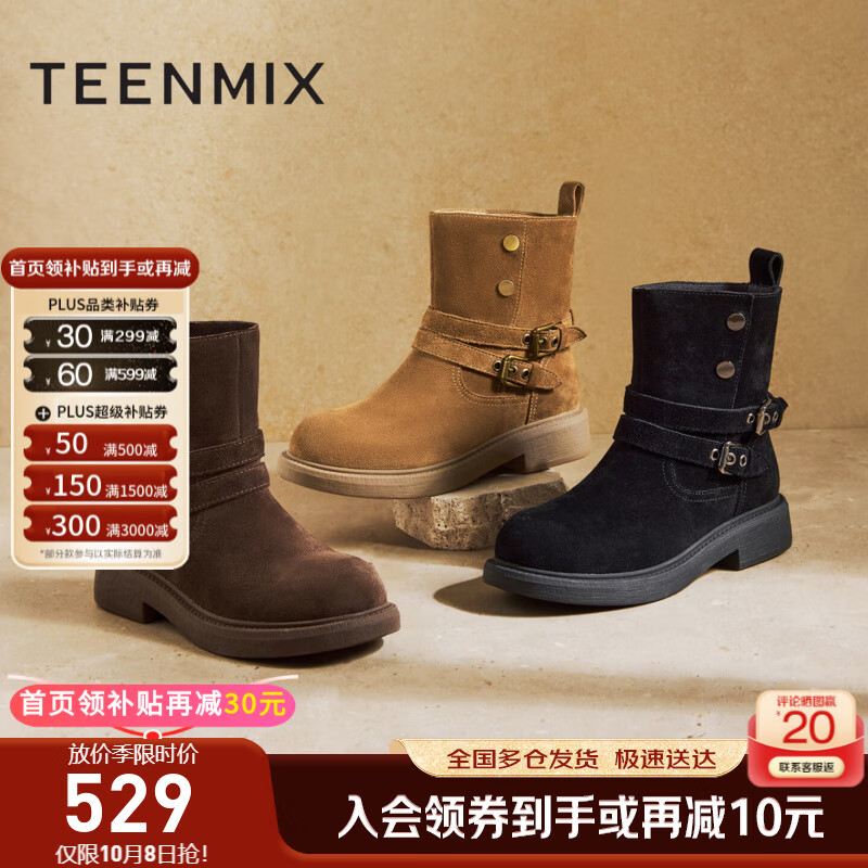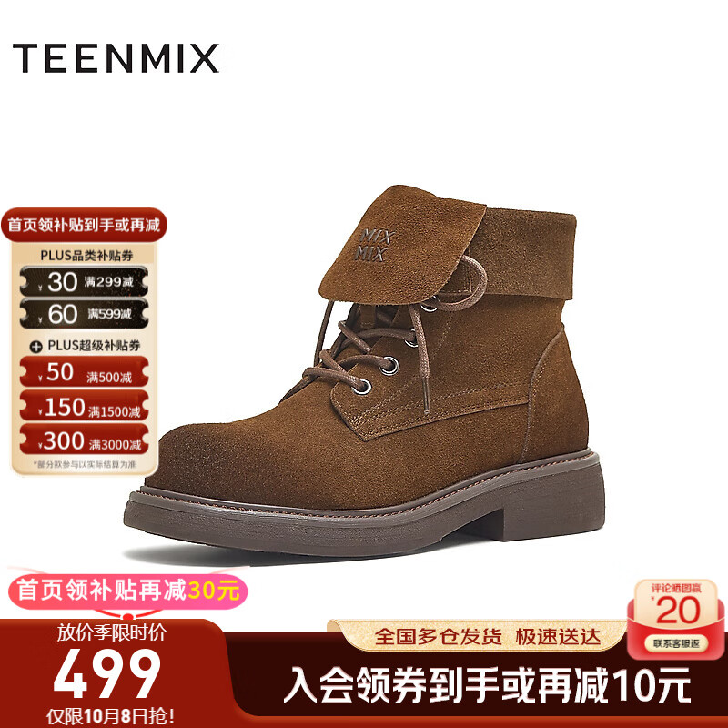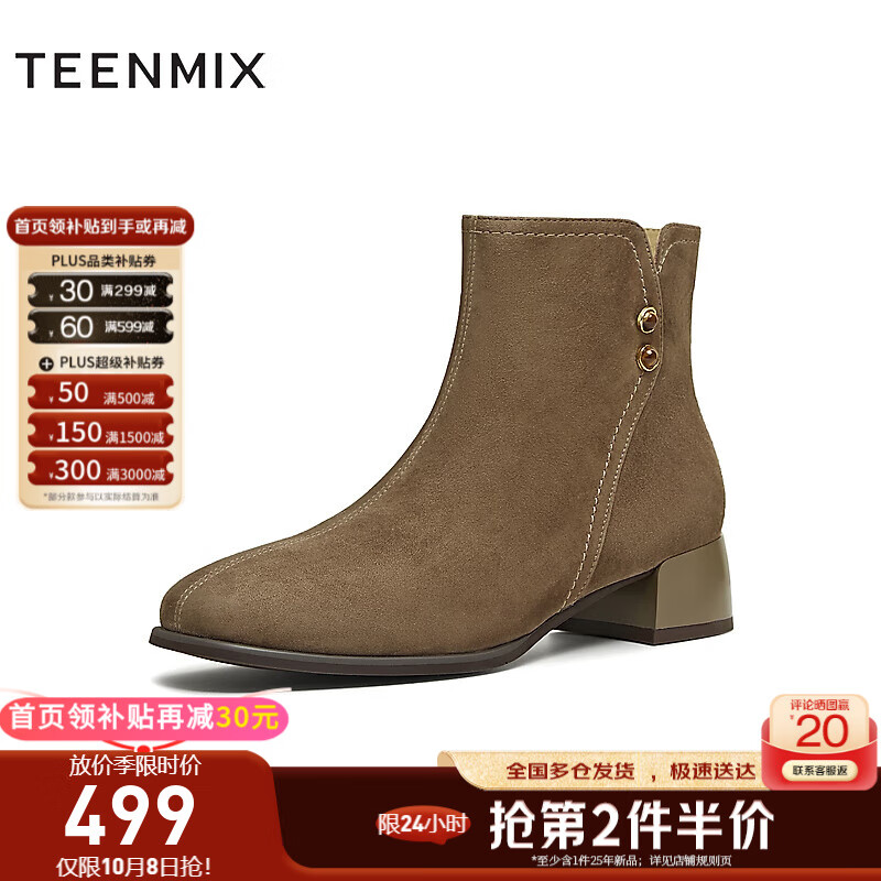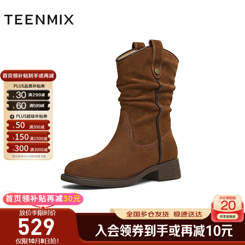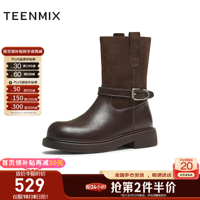 天美意西部靴商场同款厚底复古百搭短筒靴时尚女靴2025新款 啡色 37