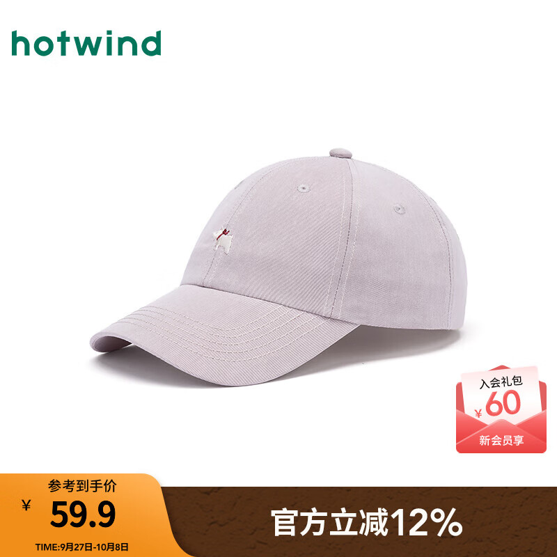 热风【商场同款】女士棒球帽25年秋新款可爱小狗棒球帽字母刺绣鸭舌帽 93浅紫 均码