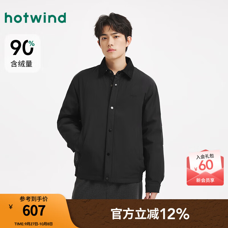 热风(Hotwind)【商场同款】男士羽绒服2025年冬季新款时尚翻领轻薄休闲羽绒外套 01黑色 S