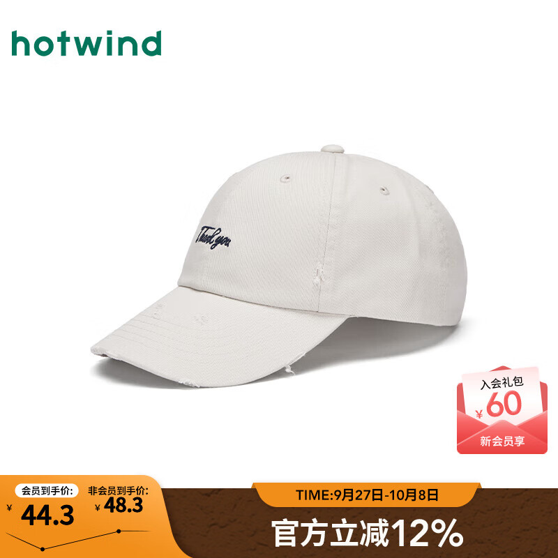 热风(Hotwind)棒球帽情侣款鸭舌帽2025年秋季新款破洞做旧字母棒球帽鸭舌帽 03米色 均码
