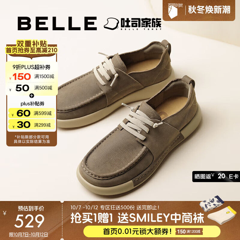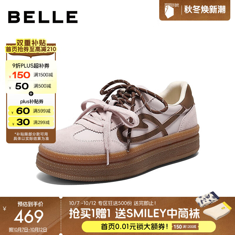 百丽(Belle)厚底流心曲奇爱心德训鞋女2025秋新增高双鞋带休闲鞋B2928CM5 粉色 37