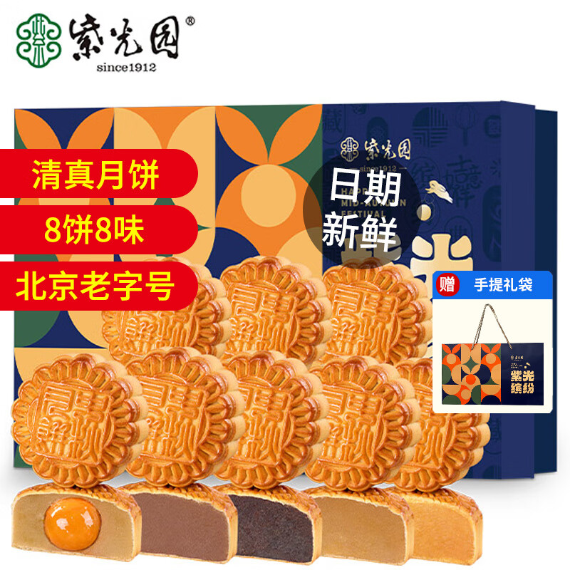紫光园 紫光缤纷清真月饼礼盒 蛋黄莲蓉北京特产老字号中秋过节送礼460g