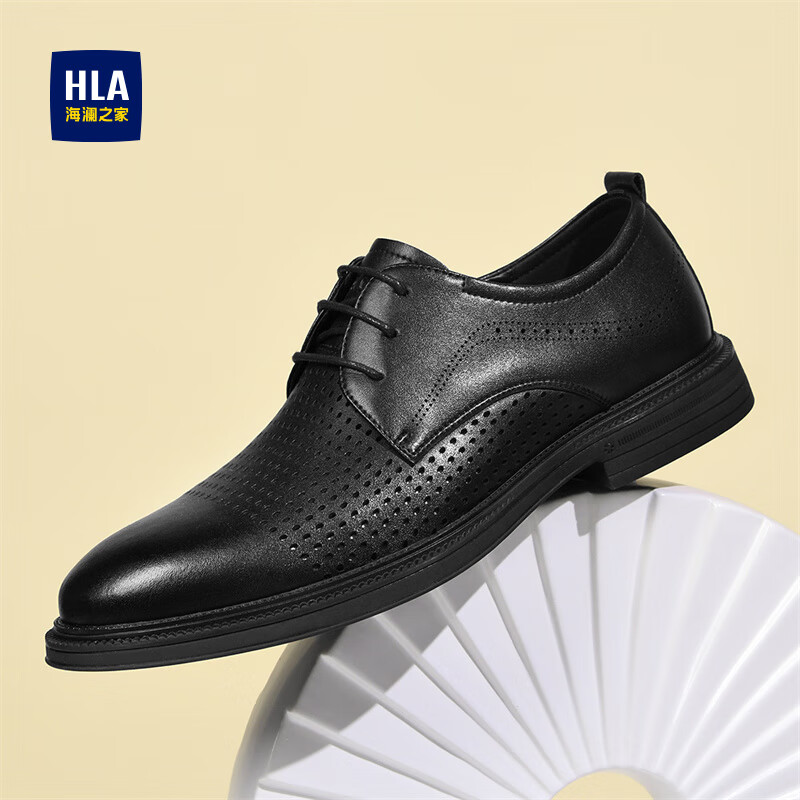 海澜之家(HLA)男鞋夏季透孔商务皮鞋男正装德比鞋子 黑色 42