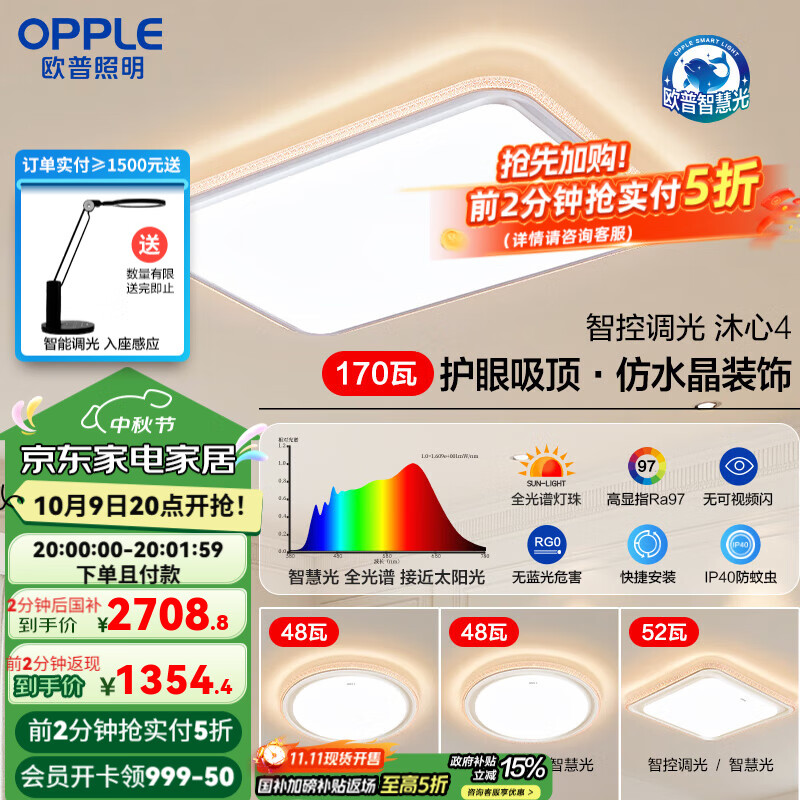 欧普25新款欧普LED全光谱护眼大厅吸顶全屋灯具饰轻奢立体米家AP魅影 A5【3室1厅-4灯】