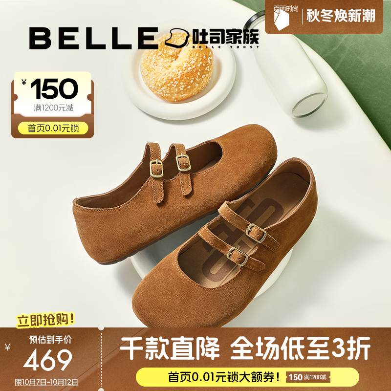 百丽(Belle)珍妮吐司舒适勃肯鞋女2025秋新内增高休闲玛丽珍鞋E7N1DCQ5 棕色 39