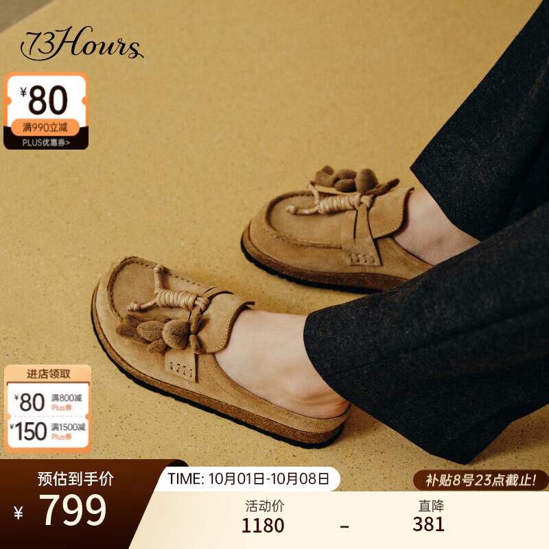 73Hours女鞋兔子窝2025秋季新款一脚蹬厚底增高勃肯鞋外穿拖鞋 浅棕 37