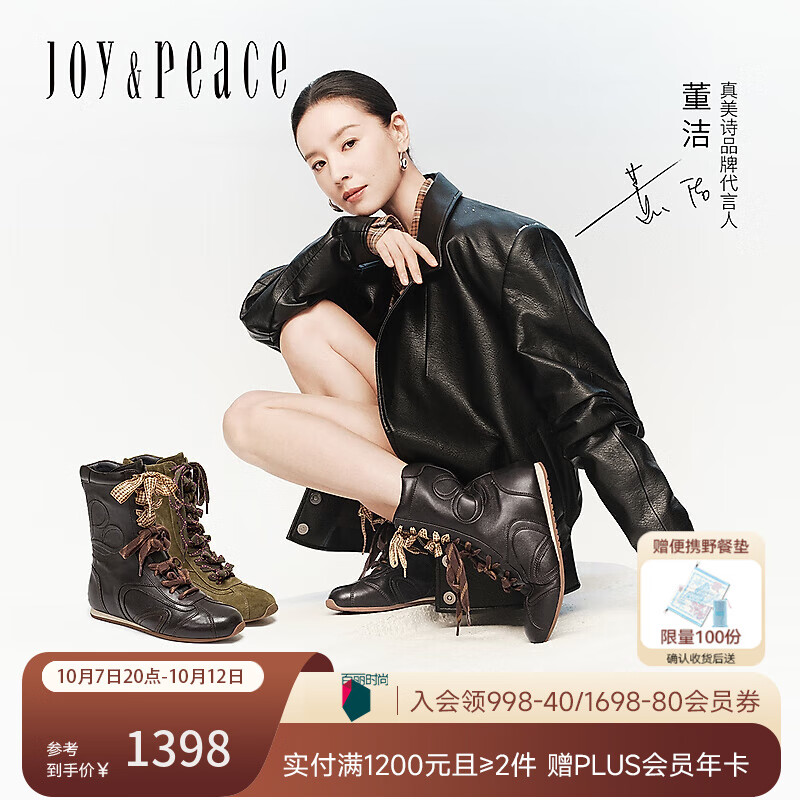 真美诗(Joy&peace)董洁同款秋日栗子25冬季羊皮系带马丁靴运动拳击靴短靴女 啡色 36