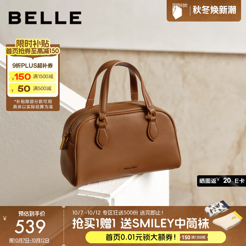 百丽包包女25商场同款头层牛皮美拉德风单肩斜挎波士顿包BL861DX5 棕色【牛皮款】 F