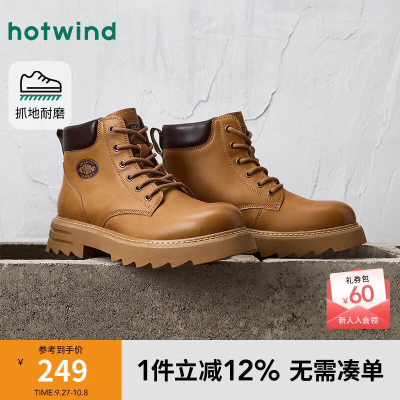 热风男鞋2025年秋季新款男士复古休闲马丁靴百搭短筒靴子工装男靴 25黄色 41