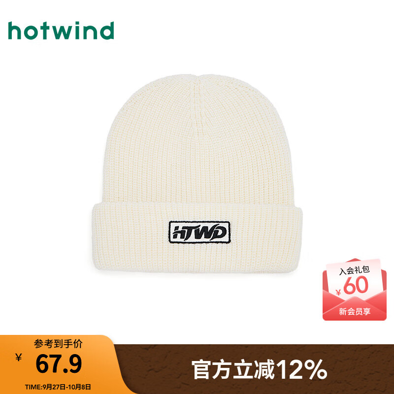 热风(Hotwind)【商场同款】女士毛线帽2025年冬季新款基础字母时尚显脸小毛线帽 03米色 56-60cm