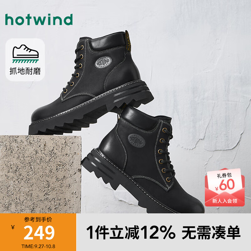 热风(Hotwind)2025年冬季新款男士时尚休闲靴 01黑色 38