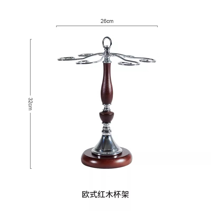 尔思家实木水杯架茶盘杯子收纳置物架桌面放水杯咖啡杯马克杯餐桌展示架 胡桃色大号把手款【进口实木】