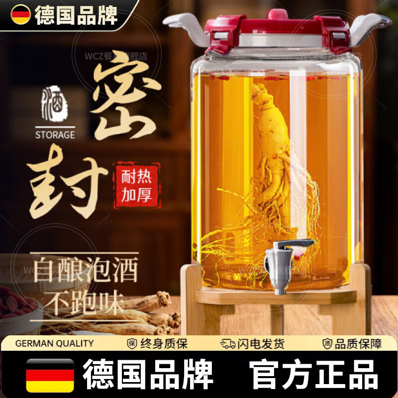 WCZ德国泡酒玻璃瓶家用密封容器20斤青梅药酒罐酒坛子专用酒瓶 密封加厚带陶瓷芯龙头 5斤