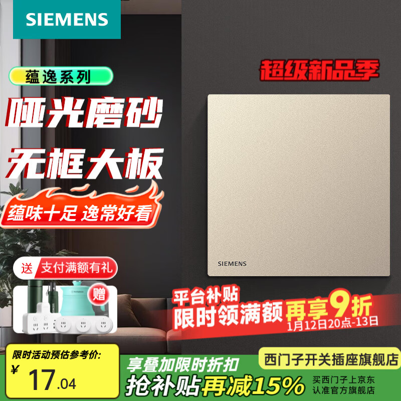 西门子(SIEMENS)开关插座面板86型墙壁电源 16A大功率开关蕴逸金色开关 一开单控 16A