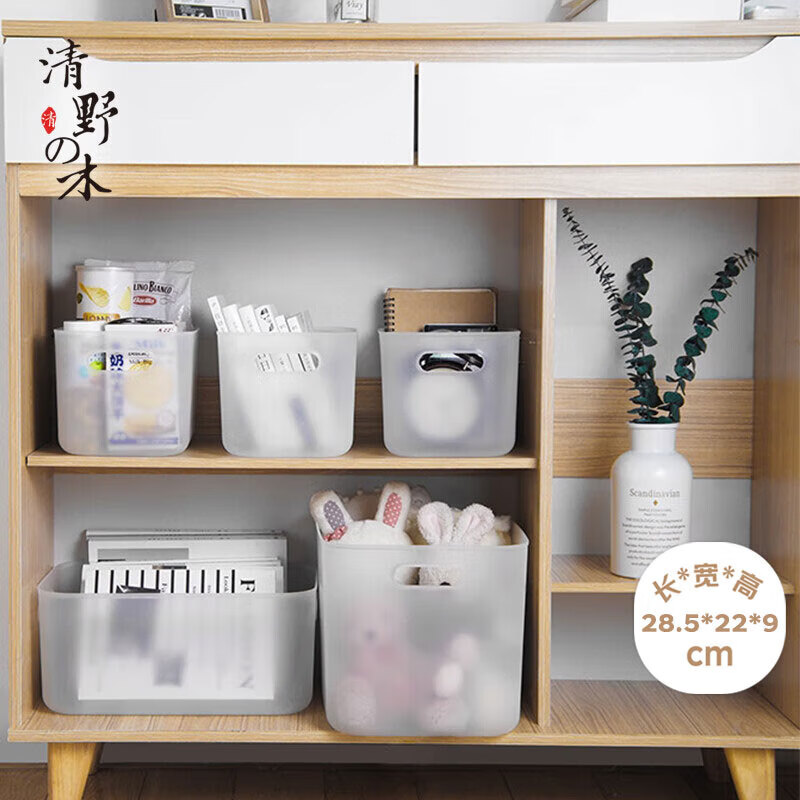 清野の木 桌面收纳盒收纳筐收纳篮内衣整理盒 中号扁-透明无盖 28.5*22*9cm