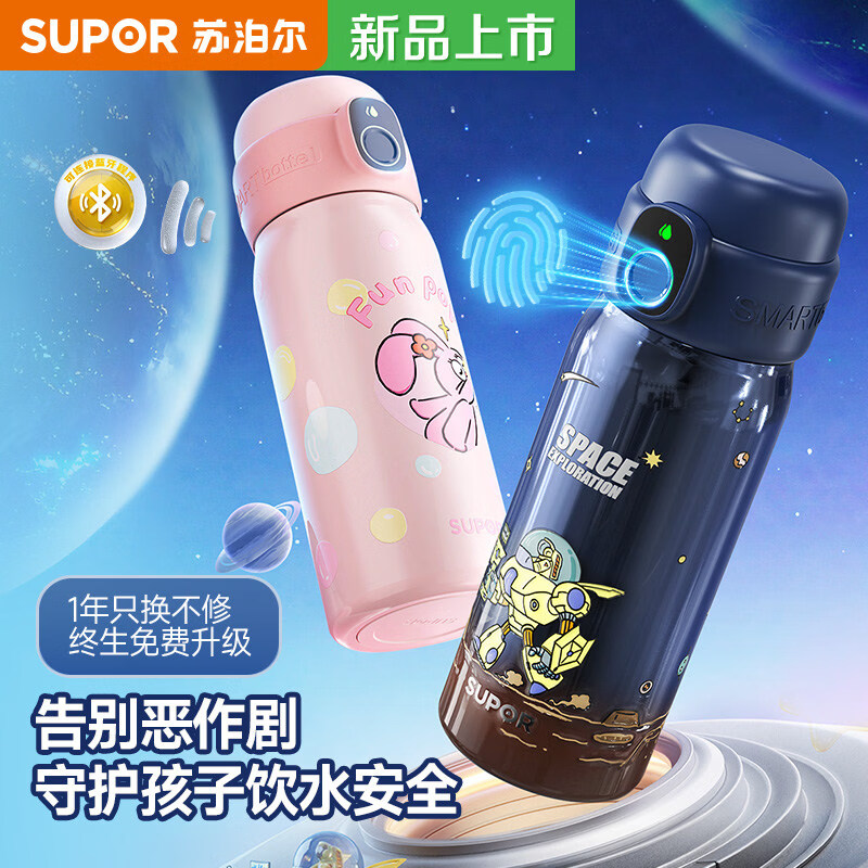 苏泊尔(SUPOR)儿童智能指纹解锁保温杯小学生6-12岁上学专用水杯316L男女礼物 幻彩工艺梦幻独角兽550ml+杯套【指纹解锁316L不锈钢】