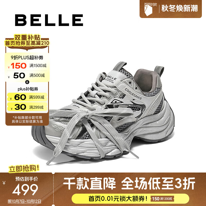 百丽(Belle)潮酷拼接面老爹鞋女2025秋新商场同款厚底增高休闲鞋E7G1DCM5 银灰色 37