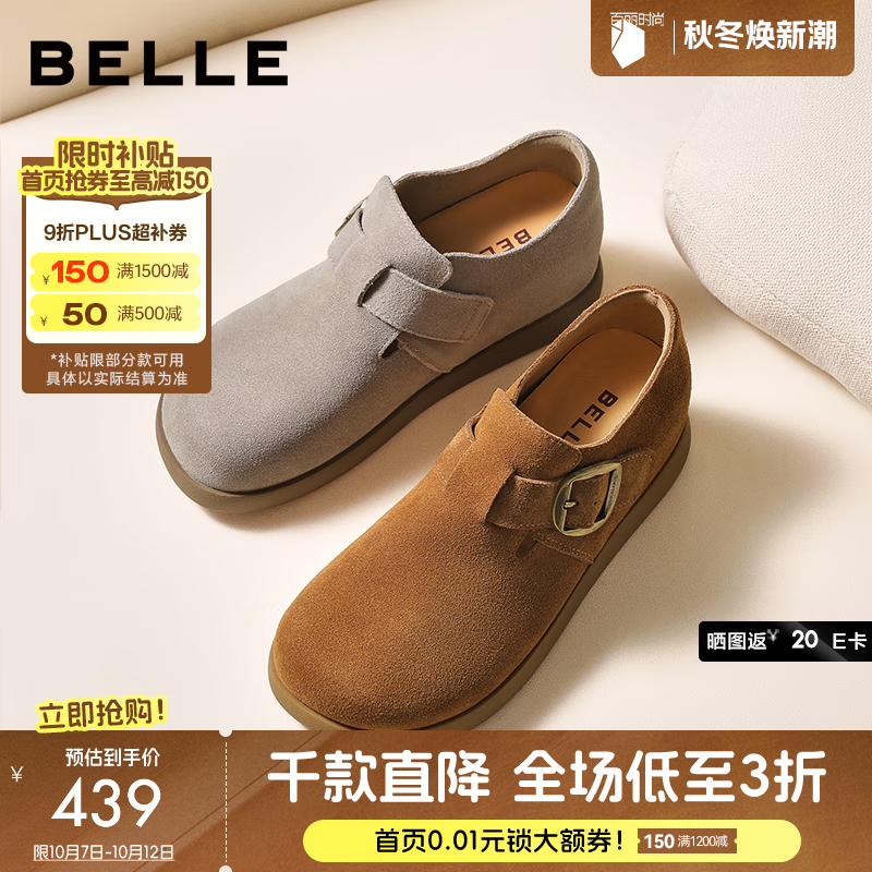 百丽(Belle)复古勃肯鞋女2025秋新舒适内增高休闲全包单鞋B2849CM5预售 棕色 36