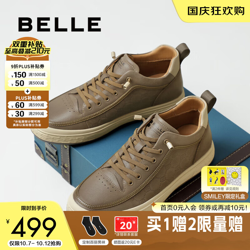 百丽时尚休闲高帮板鞋男25冬新款牛皮印花工装鞋加绒A2188DM5 卡其色-单里 40 (250mm)