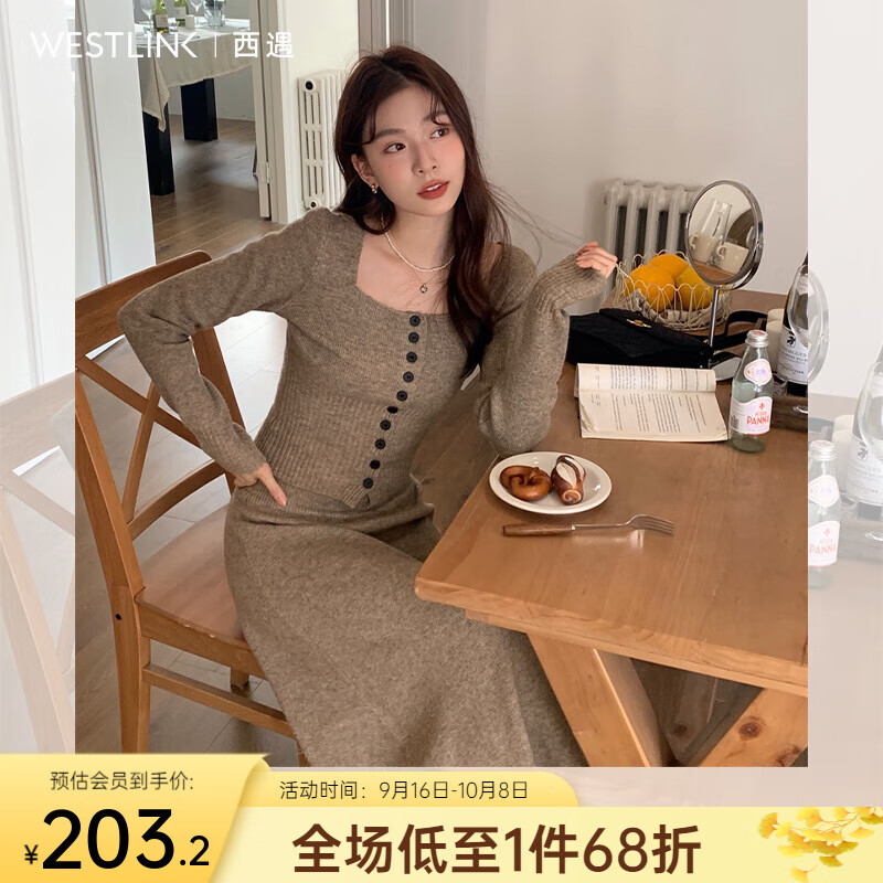 西遇(Westlink)西遇修身长袖针织衫套装2025年秋季新款高腰大裙摆半身长裙两件套 杏色 (预售15天) M (160)