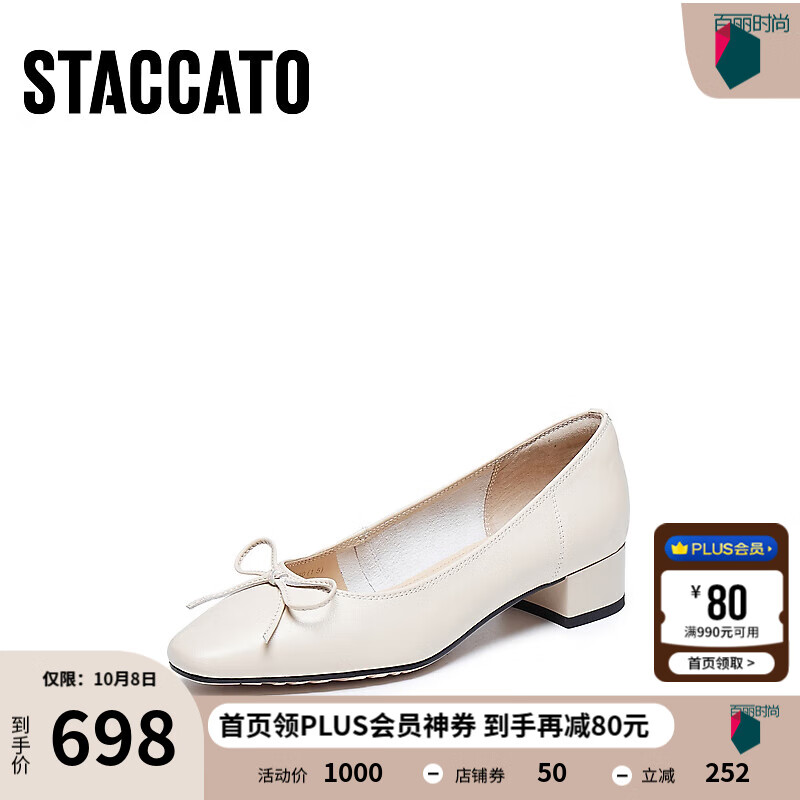 思加图2025秋季新款气质奶油鞋单鞋浅口鞋粗跟通勤女鞋子Q5382CQ5 奶油米白 37