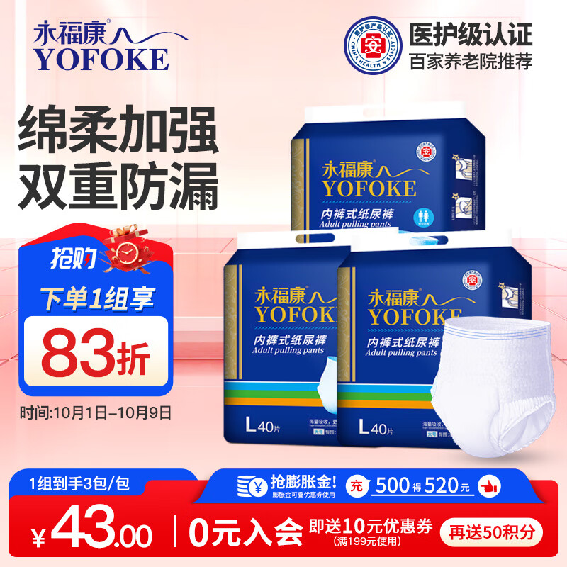 永福康成人拉拉裤内裤型纸尿裤老人用尿不湿轻薄透气医护级男女通用 L120片(臀围80-120cm)