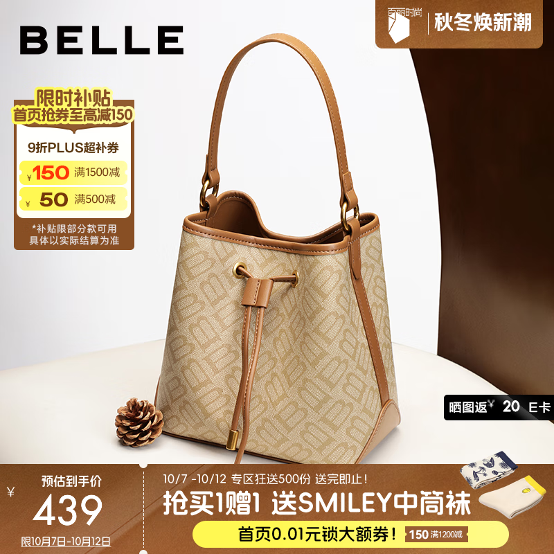 百丽包包女2025秋新复古休闲单肩手提菜篮子水桶包X2052DX5 杏色 F