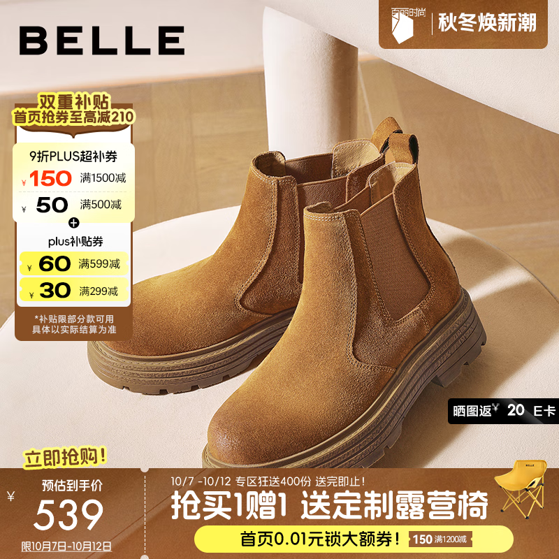 百丽(Belle)张凌赫同款擦色切尔西靴女2025冬新厚底增高休闲短靴B2875DD5 棕色 39