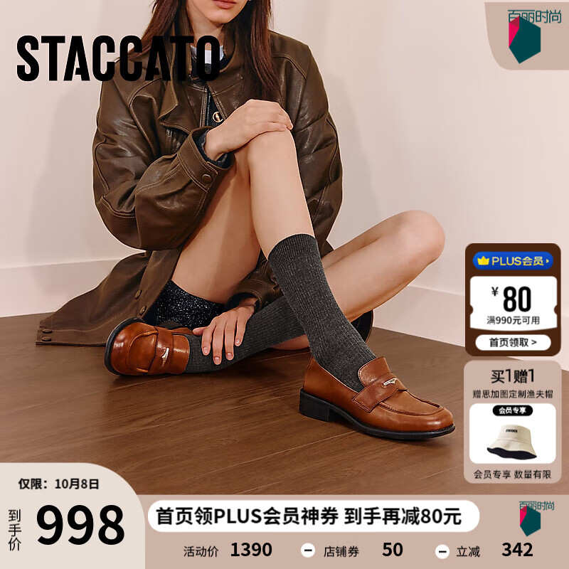 思加图2025秋季新款英伦风乐福鞋一脚蹬小皮鞋单鞋女鞋子J5877CA5 复古棕 40
