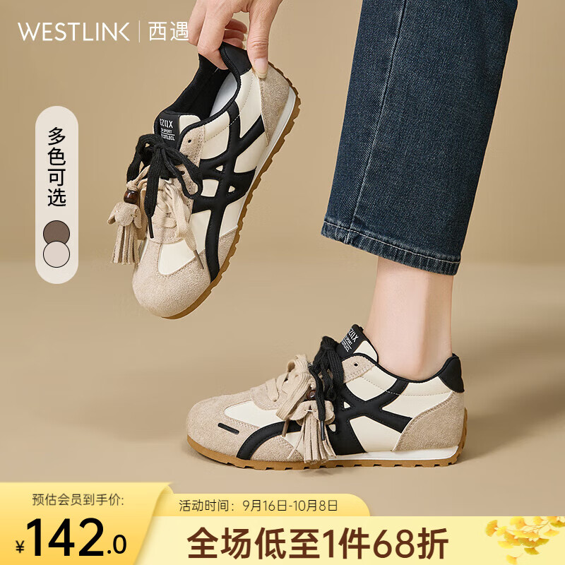 西遇复古德训鞋女2025新款秋季圆头平底休闲鞋薄底运动鞋 米色 37 (235)
