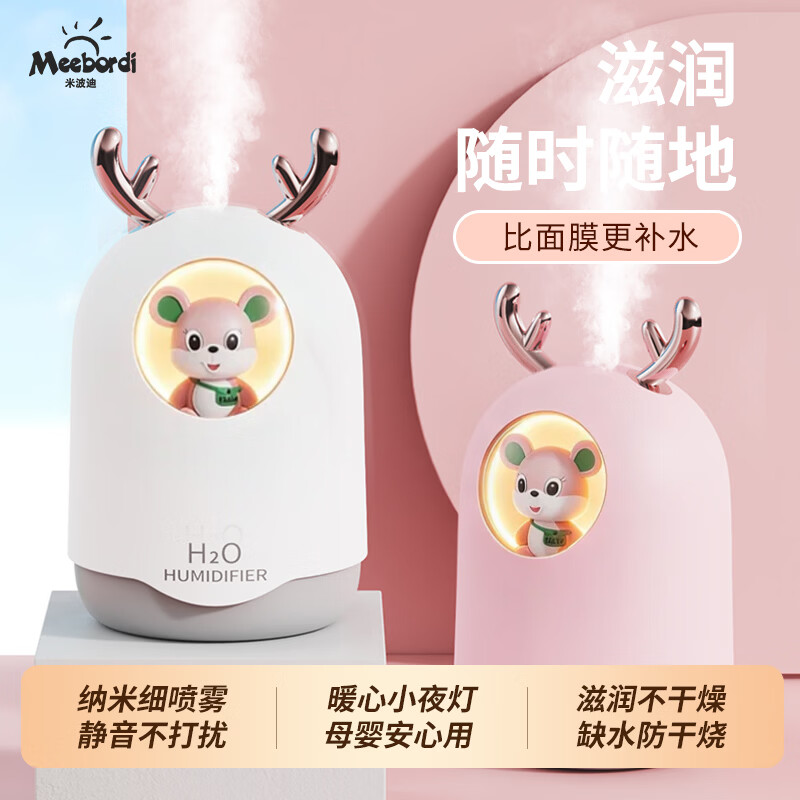 米波迪(Meebordi)【情人节礼物】加湿器新款萌宠迷你空气净化器家用小型保湿创意礼品小无雾米加湿器年会礼品少女粉