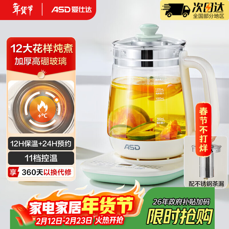 爱仕达(ASD)养生壶 煮茶壶 恒温水壶 24H可预约恒温壶烧水一体智能电热水壶花茶壶烧水壶11档功能 1.5L大容量