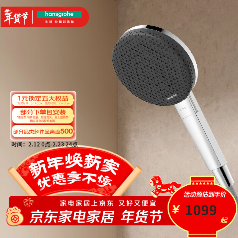 汉斯格雅(Hansgrohe)双星雨125手持花洒3速 镀铬色24511007