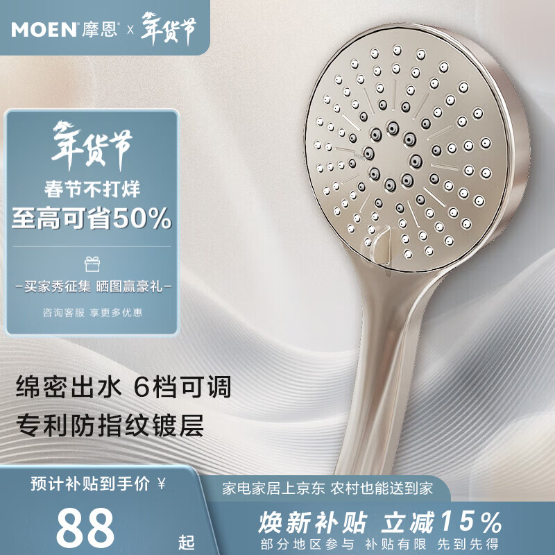 摩恩手持花洒防指纹花洒喷头六种出水方式多功能浴室淋浴花洒配件 摩恩防指纹手持花洒