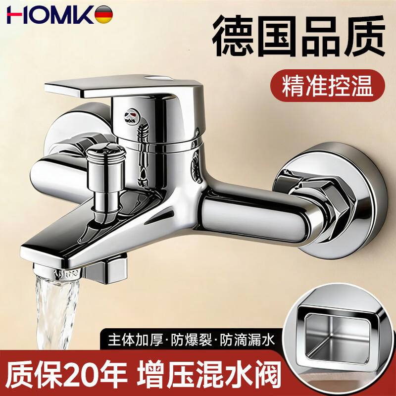 HOMK【德国】淋浴水龙头混水阀冷热水二合一浴室洗澡三联龙头花洒套装 【冷热双控】大流量混水阀-电镀色 加厚材质丨精准控温丨大流量出水