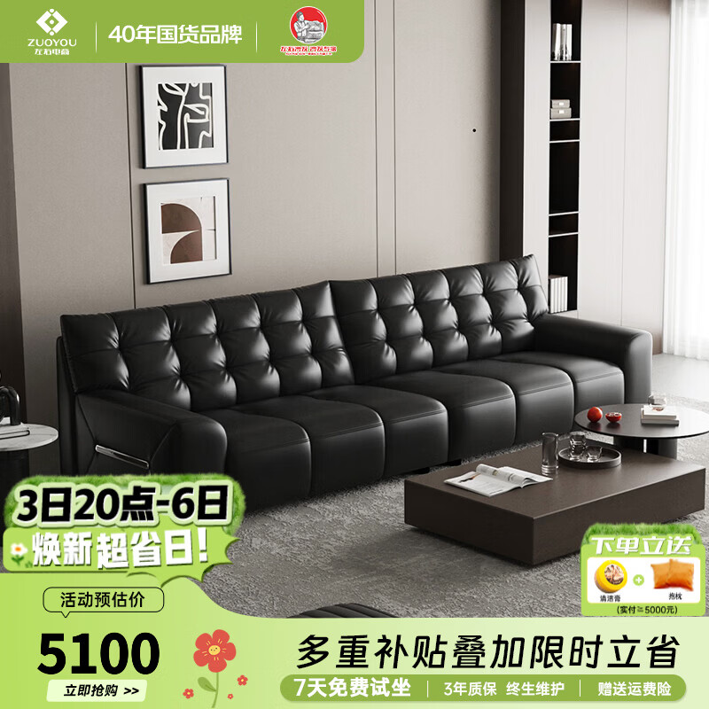 左右 大黑熊真皮沙发客厅家具头层牛皮沙发直排现代简约皮艺沙发6098 黑色 3.2米四人位