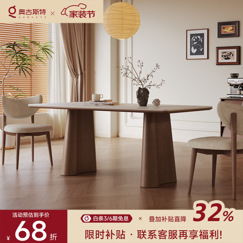 AUGUSTE奥古斯特长方形岩板餐桌洞石小户型2026新款中古风全托实木餐桌 1.8米+4椅(云棕餐桌)