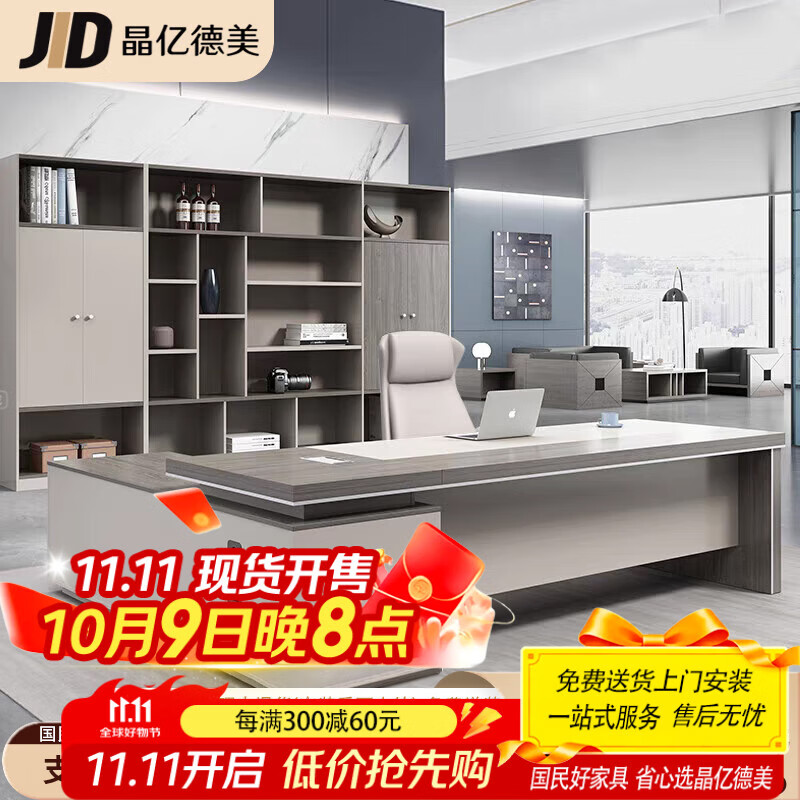 晶亿德美老板桌办公桌总裁桌经理桌主管桌 2.8米老板桌+老板椅+八门文件柜