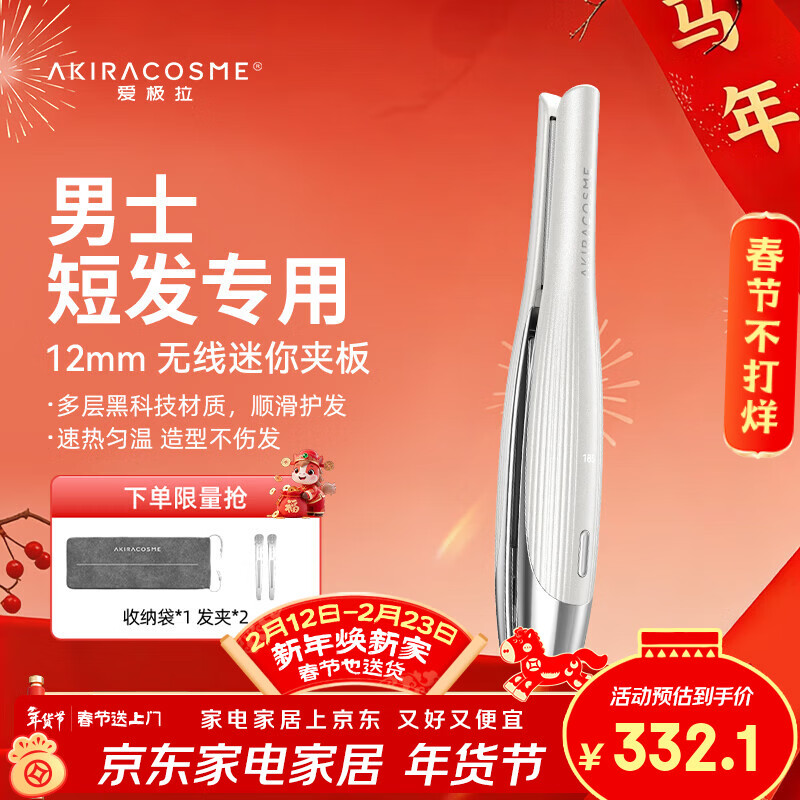 AKiracosme爱极拉直板夹无线迷你自动卷发棒小功率卷直两用负离子轻巧便携速热刘海直发器【新年春节礼物】 鎏光白【卷直两用】