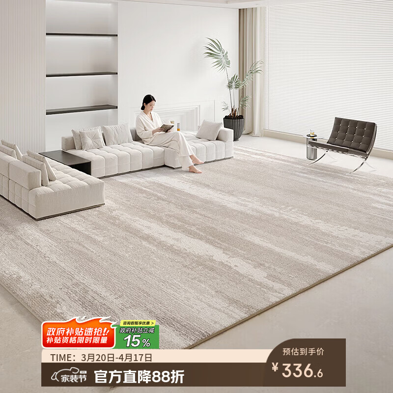 布迪思地毯客厅2026新款简约奶油风免洗可擦轻奢高级卧室防滑纯色大尺寸 寻雾【圈绒】 200*300CM【百搭推荐尺寸】