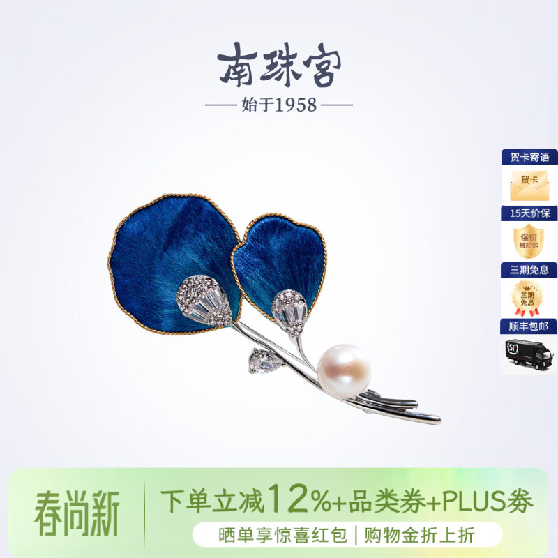 南珠宫丝绒花淡水珍珠胸针日常百搭生日礼物送妈妈H106D-J 银色款 9.0-10.0mm