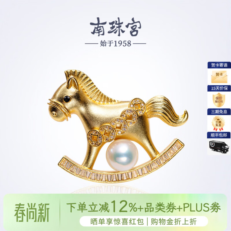 南珠宫马上发财淡水珍珠胸针日常百搭高级感生日礼物送老婆H109D-J 9.0-10.0mm