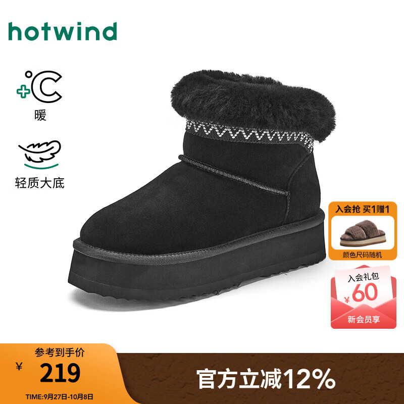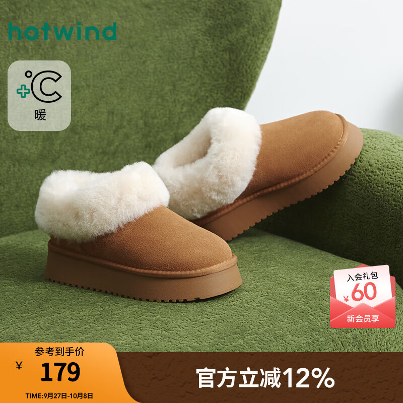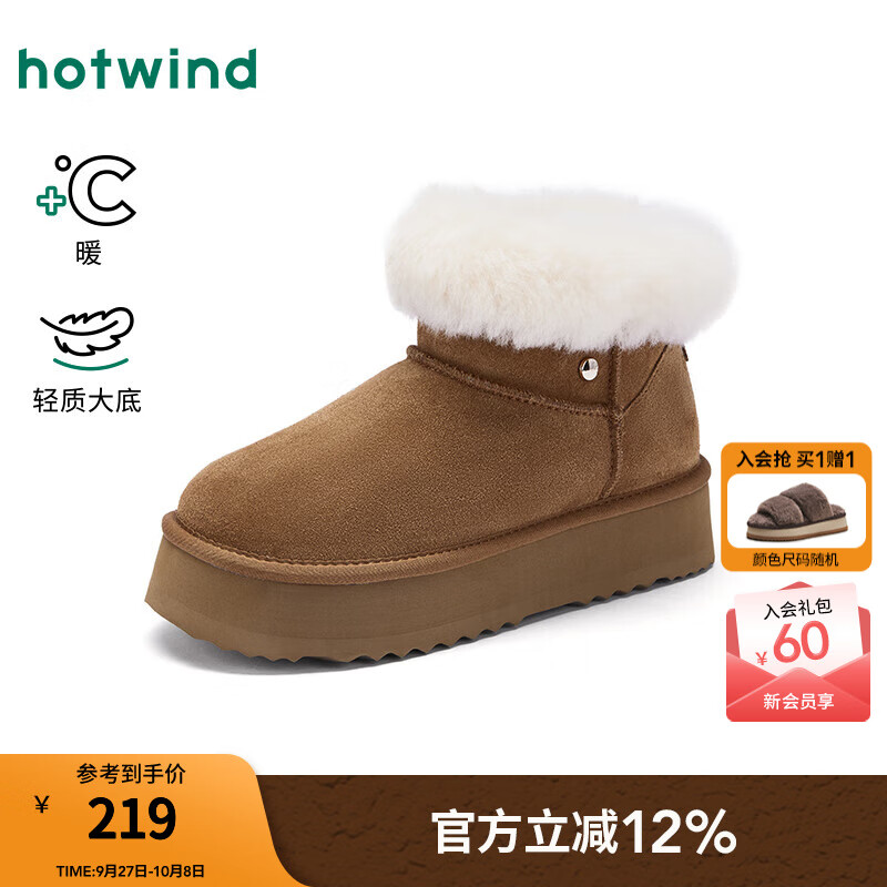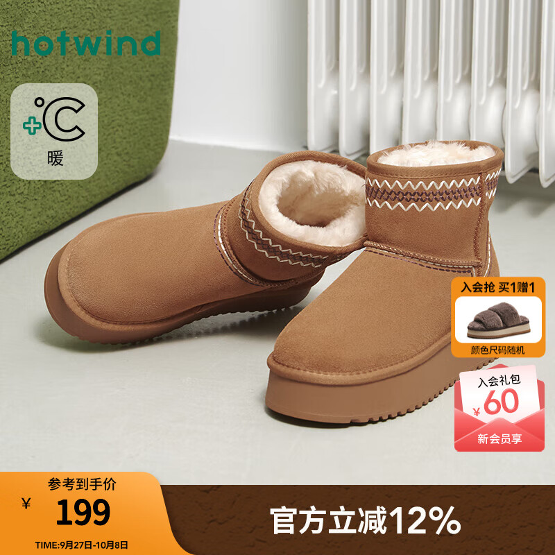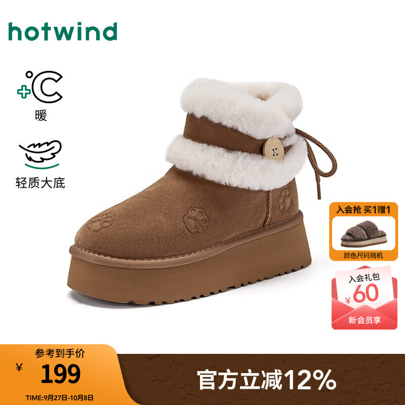 热风(Hotwind)加绒雪地靴女鞋2025年冬季新款厚底保暖舒适棉鞋户外百搭靴子 02棕色 34