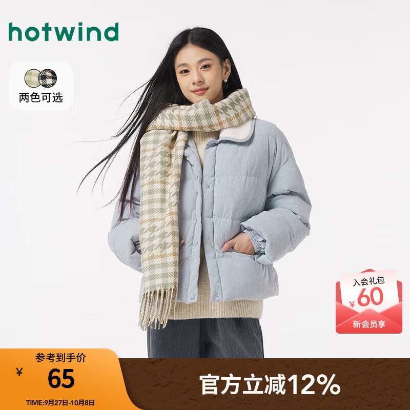 热风(Hotwind)女士围巾2025年冬季新款经典千鸟格围巾保暖格纹韩系披肩围巾 66白绿 F