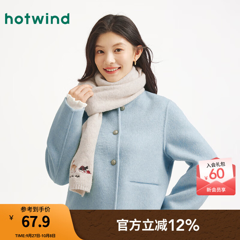 热风(Hotwind)【商场同款】女士围巾2025年冬季新款绣花小猫针织韩系装饰围脖 03米色 23*175cm