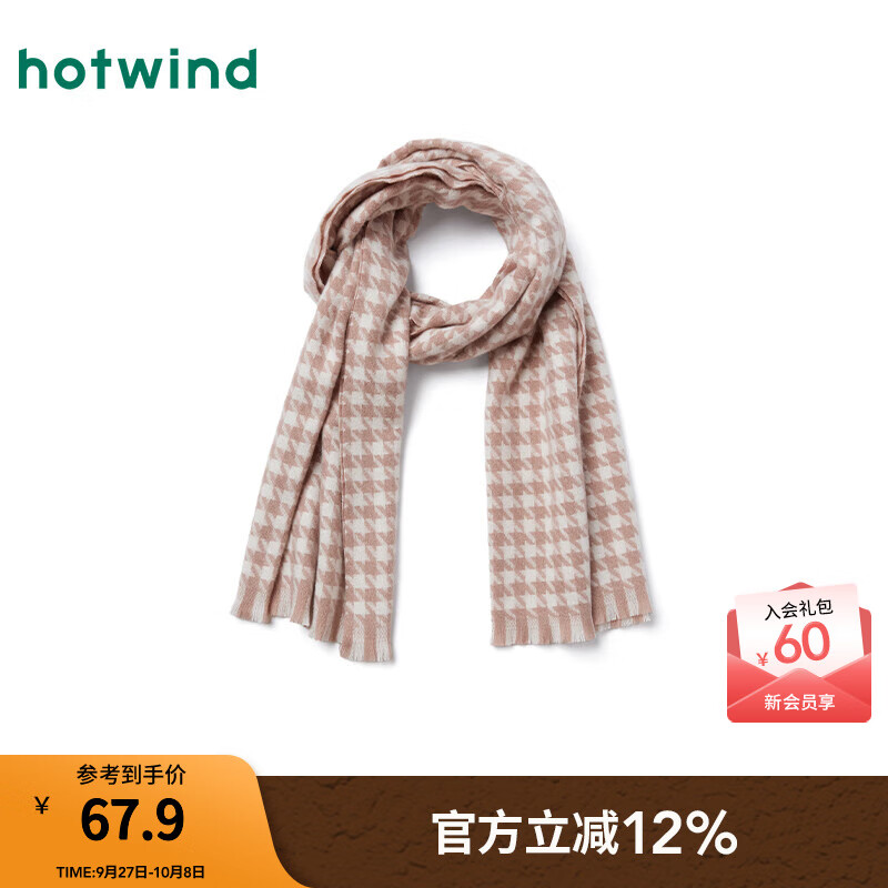 热风(Hotwind)【商场同款】女士格纹围巾2025年冬季新款女士小千鸟格梭织围巾 67白粉红 F