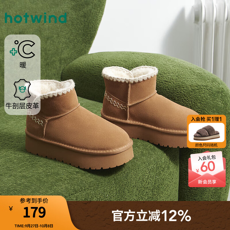 热风(Hotwind)厚底雪地靴女鞋2025年冬季新款增高加绒加厚短靴百搭棉鞋靴子 02棕色 40
