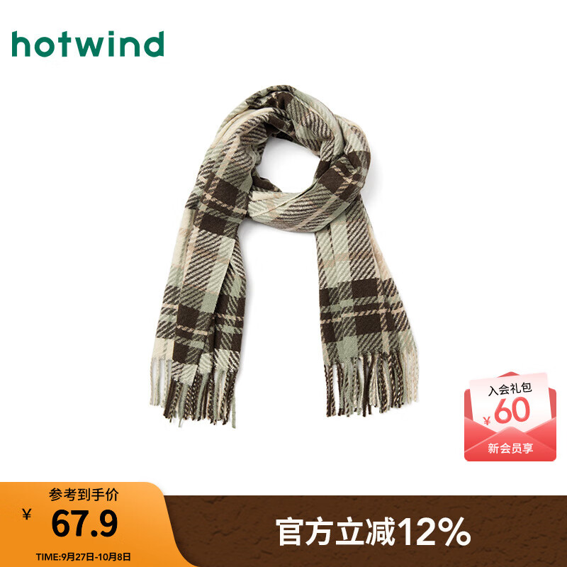 热风(Hotwind)【商场同款】女士围巾2025年冬季新款时尚格纹梭织围韩系流苏围巾 91棕绿 F