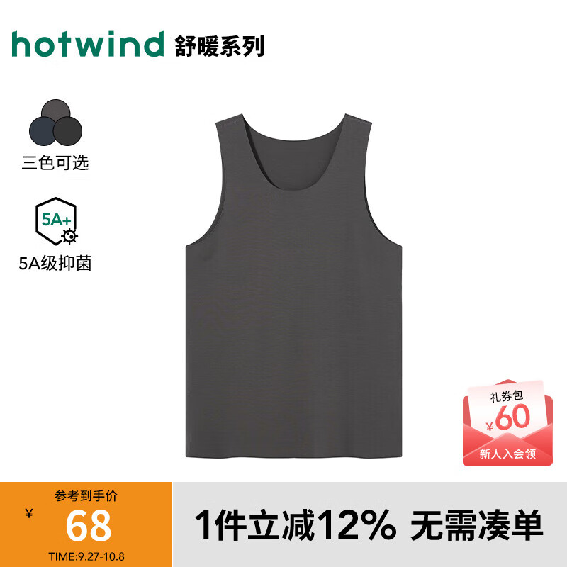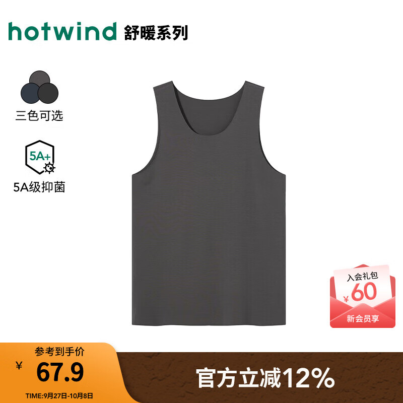 热风(Hotwind)【商场同款】男士打底背心2025年冬季新款无痕舒适保暖抑菌上衣 09灰色 L