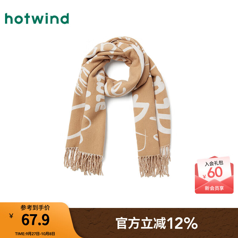 热风(Hotwind)【商场同款】女士围巾2025年冬季新款字母提花梭织韩系流苏披肩 16浅棕 F
